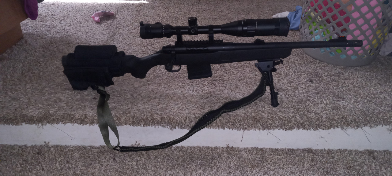 I built something similar out of a '67 Ishapore 2A1 salvage, and bits out of my parts stash, ATI syth, big Chinese glass, cheap bipod and Cabela's cheek riser. I'm running a 5 round mag but I have 10s & 12s. If you shoot slow, it groups FMJ okay at 300 yards. I think I've scrounged up enough MK III furniture to resto, but it doesn't bother me that much set up the way it is. PAX