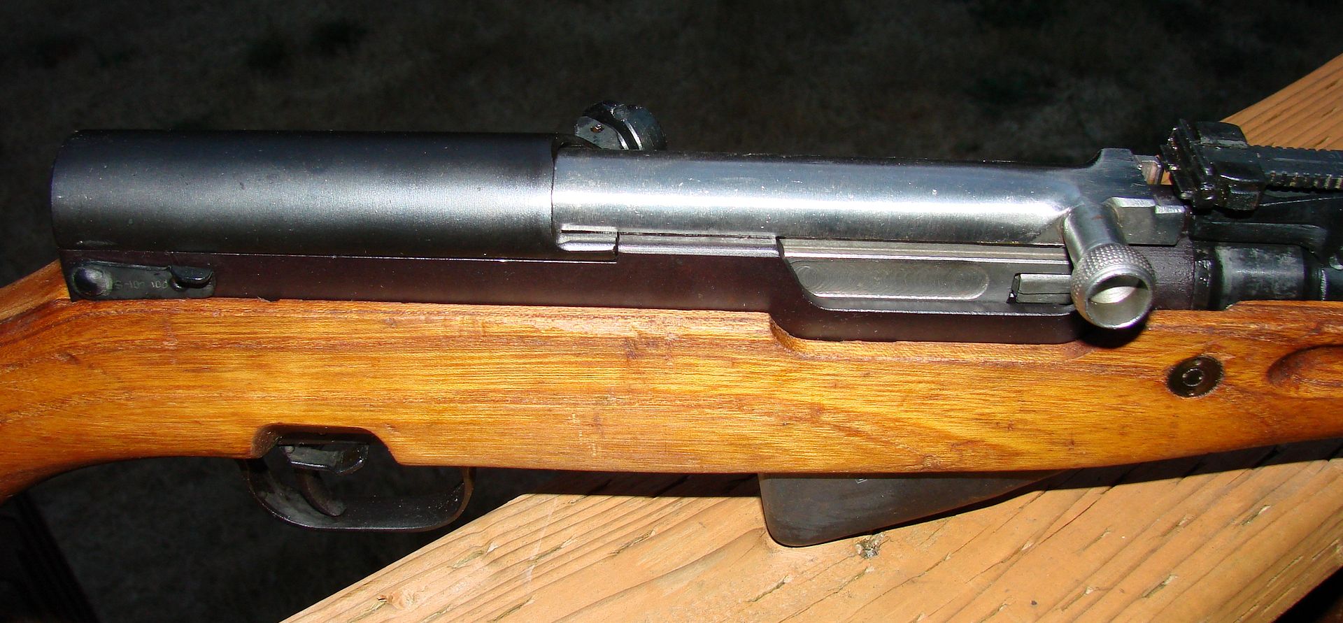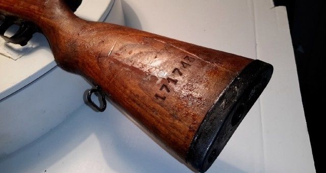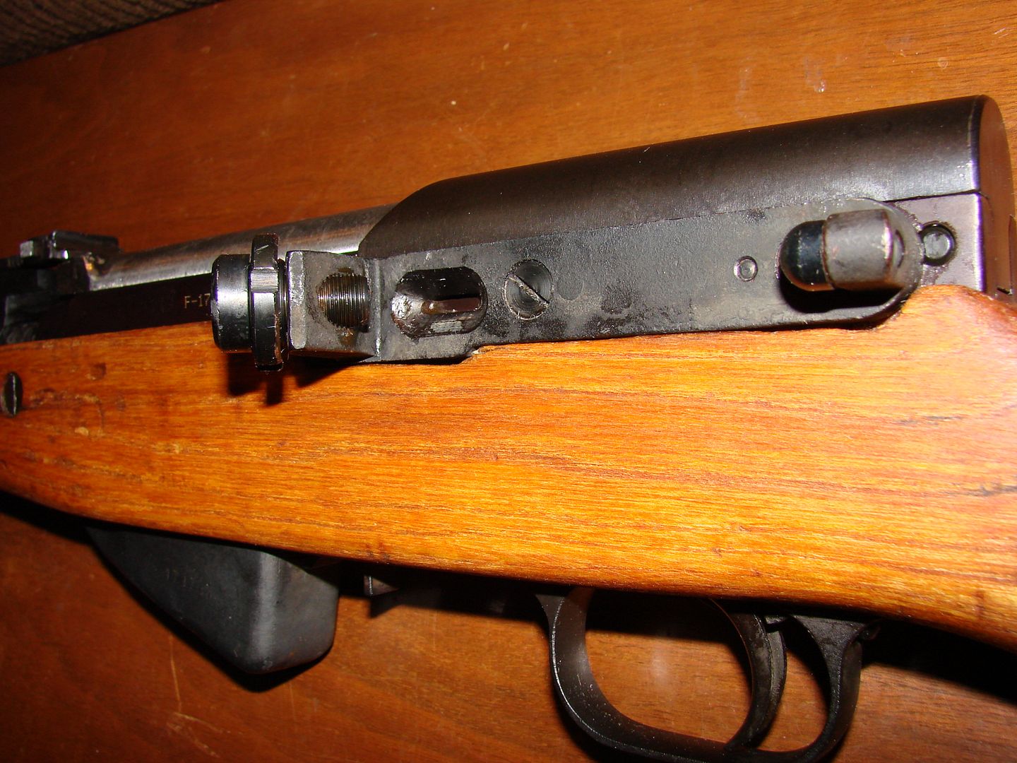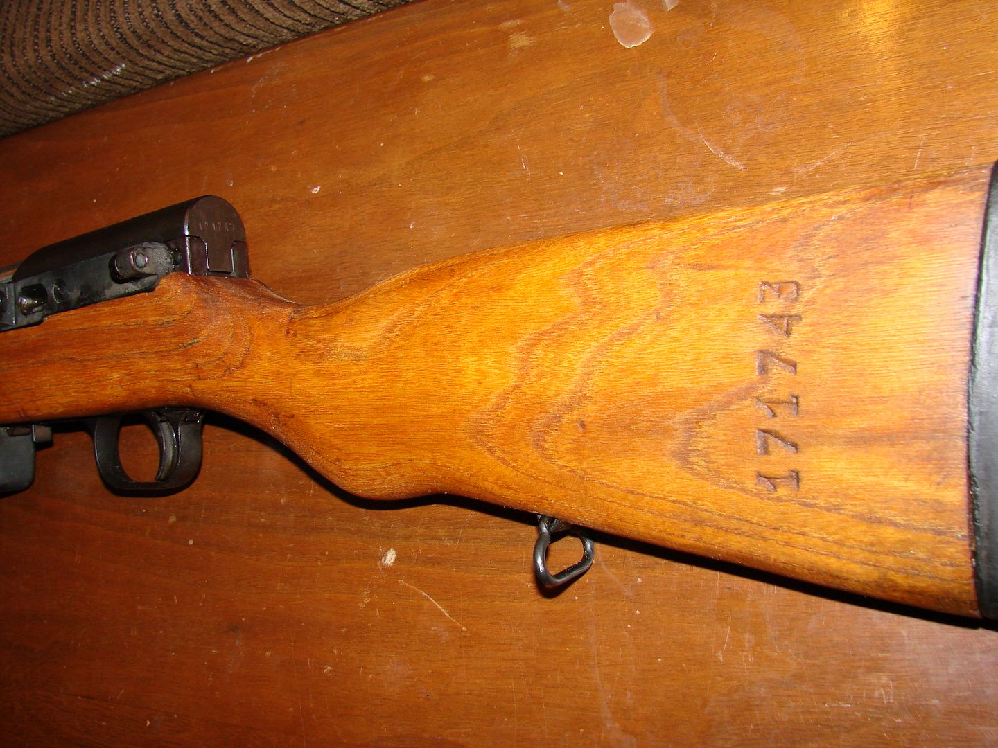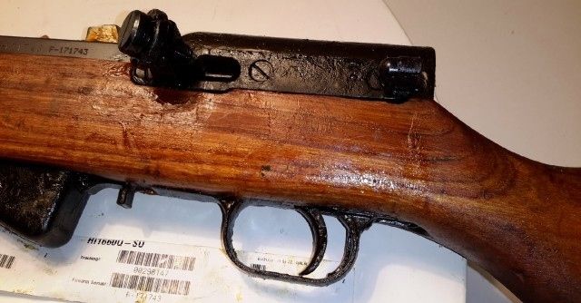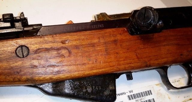 Received it today...and indeed....holy cosmoline....Nothing really new to report. It's interesting about the double serial number stampings/dot matrixing. I have not broken it down yet...because quite honestly......I stick to it when I handle it.... :)  I'll clean it up tomorrow morning.....I found no TRZ or TRZ-1 on the stock.....but did find this under the rear sight leaf.....
