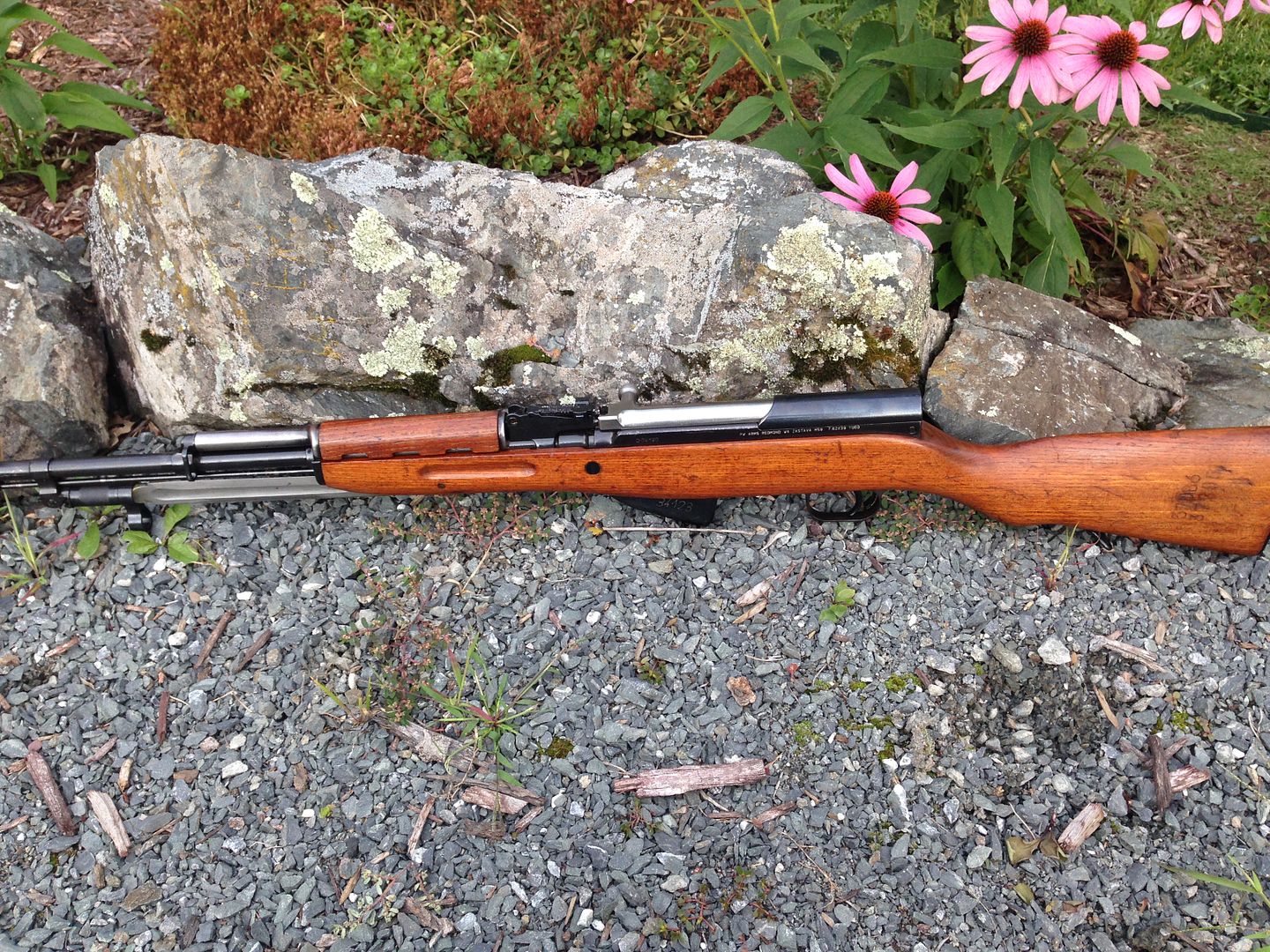 L-C, that guy's stock looks sanded!  Check out the finger groove and the safety cutout.  I kinda like his chrome bayonet, magazine, and recoil pad!  I wonder if anyone that got the m59/66's got sanded stocks?