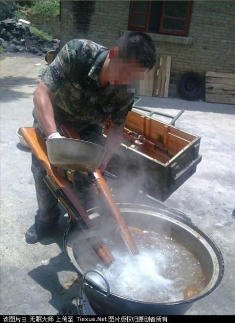 Yeah I was going to say they don't even break down the gun, I bet the gas tube and spots between the stock and receiver are still pretty gooey after this process.  No breakdown of the bolt either.  ???