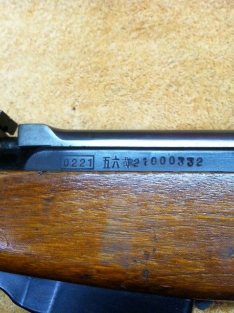 I picked up a really nice all matching rectangle factory 0221 in the 21mil range at lunch today. It has a "R" stamped in front of the SN# kinda on top of the Chinese letter. It has the cleaning rod, cleaning kit and a chinese sling.  The stock is matching and has a bottom sling swivel. The stock and metal are in great shape. I'll post some pic tonight.