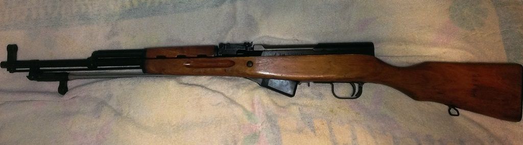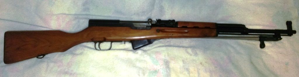 There are plenty of photos of this SKS elsewhere, but I guess you don't remember it.  I will look for them.  Photobucket is horribly cumbersome.  Yeah, it is pristine.  Short barrel lug, probably stamped trigger group.  Bolt carrier and gas tube are just like any of my other Chinese, as far as I know, but the gas tube is EP'd with the serial.