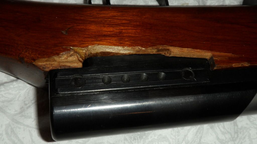 Sometimes it's hard to tell a humped gun, sometimes it's easy.  This one fooled me.  It bothered me, but I couldn't quite put my thumb on it until I saw the archived photos.  The shiny coat (poly?) really should have been my first clue.  This stock has had a very *heavy* sanding and a total refinish.  They were able to take out much of the scratches and divots, but the really deep ones still remain.  Anyhow, I thought it would be a good thing to post to show a verifiably humped gun and maybe point out what to look for when you see a "nice" one in an auction that you can't physically handle.