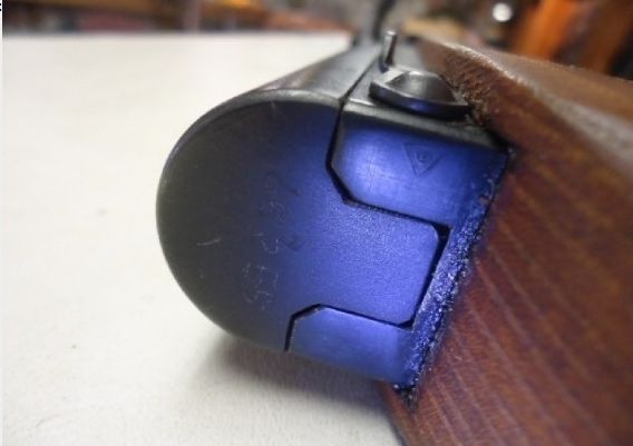 It is actually a matching number to the underside of the receiver and barrel lug.  The serial is D-57785 and it is a true 59/66 no night sight upgrades, and doesn't appear to have ever had anything other than a couple of inspections and perhaps a very light refurb. There is considerable bluing wear in areas that it would be held and on the GL and the mag is almost in the white...but shows little wear on the inside.  The butt pad shows considerable wear, and the crack makes me wonder if this was an Honor Guard's practice rifle?!  You would think they would give them something other than a rubber duck to get their moves down...perhaps an outdated early 59/66?  I doubt they would use the fancy ones until game day. :)