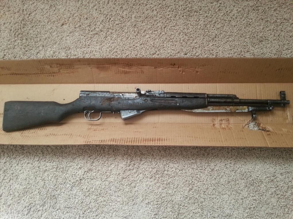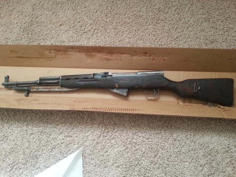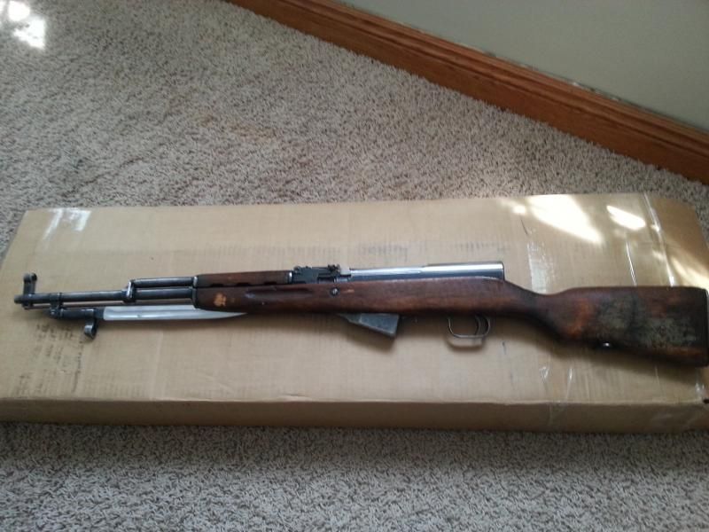 I don't know why the "Sneaks" appeal to me so much, but after seeing several arrive from Classic and RTI marked as Chinese, I kept trying my luck at the lottery with no luck. I usually scroll through the auction websites a few times daily just to see if there is anything that I can't live without. (or as Blicero would say "tickle my pickle") A few months back I seen an SKS listed as Chinese, and the seller only had a couple of pictures  listed that he most likely took from the other side of the room.  :( So I contacted him for more pictures, just to see what exactly he was selling. When he sent me several other pictures, I was pleased to see that he was actually selling a Russian with a Chinese import mark. I watched the auction for the next few days, and a few hours before it ended I bid my max, and was off to bed. (Auction ended at 1:00 AM) I lay awake wondering if I should just watch it to the very end instead of live with the frustration of missing it by a few dollars. When I grabbed my phone to check the auction I had an email that I had won it for a whole $250 + $20 shipping. I stopped at the post office the next day, and sent off my money order. About a week later she was in my hands.