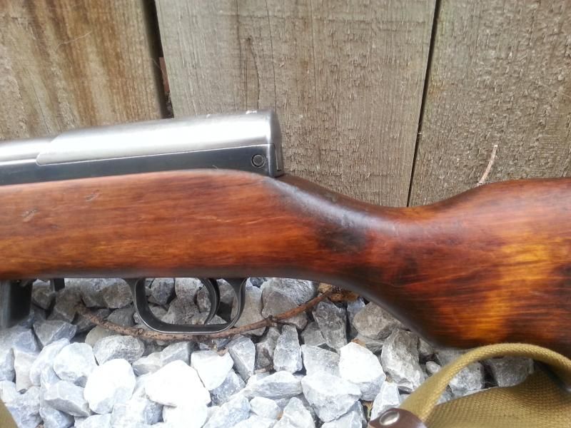 And this one, non-matching trigger guard and receiver cover. Stock matches, but is rough.
