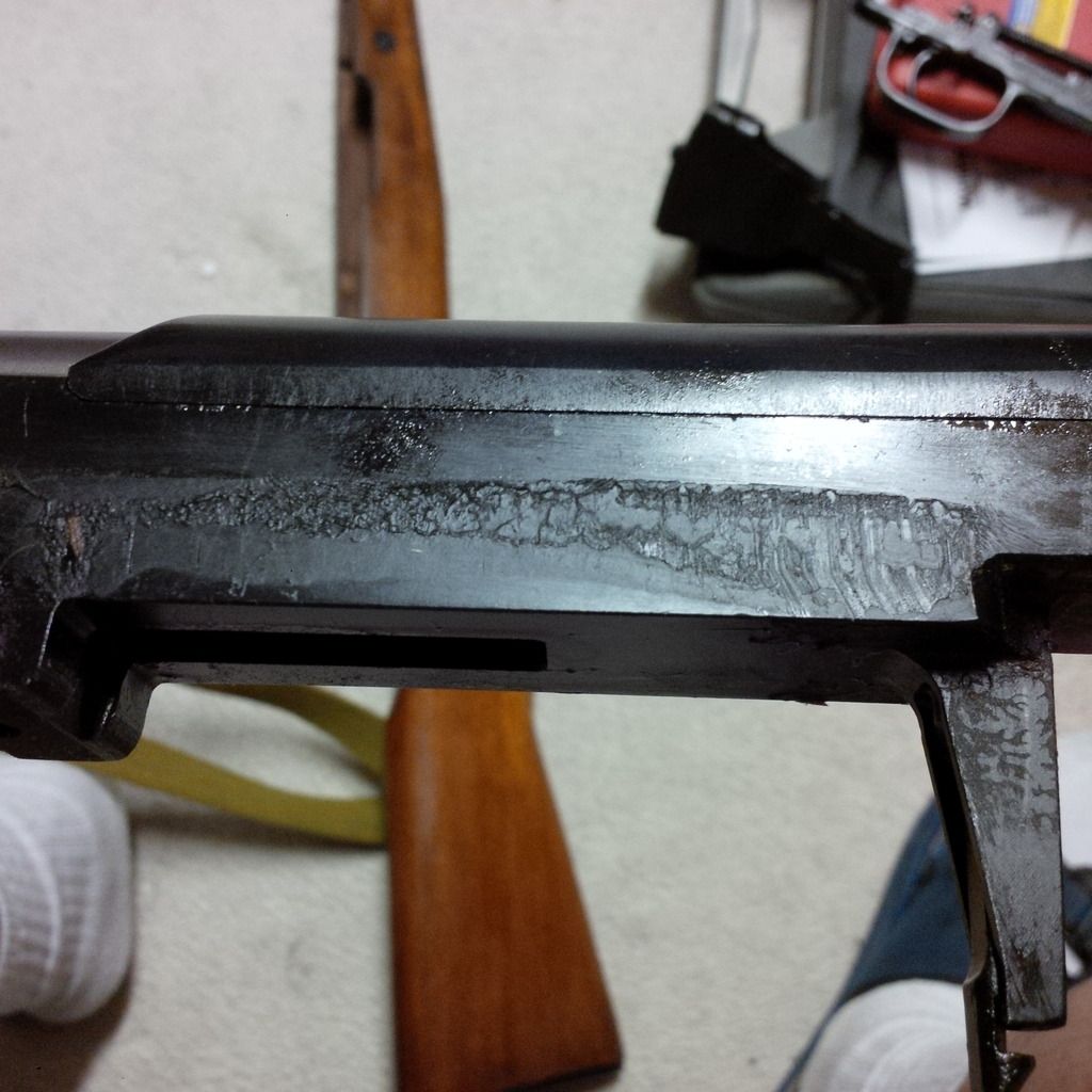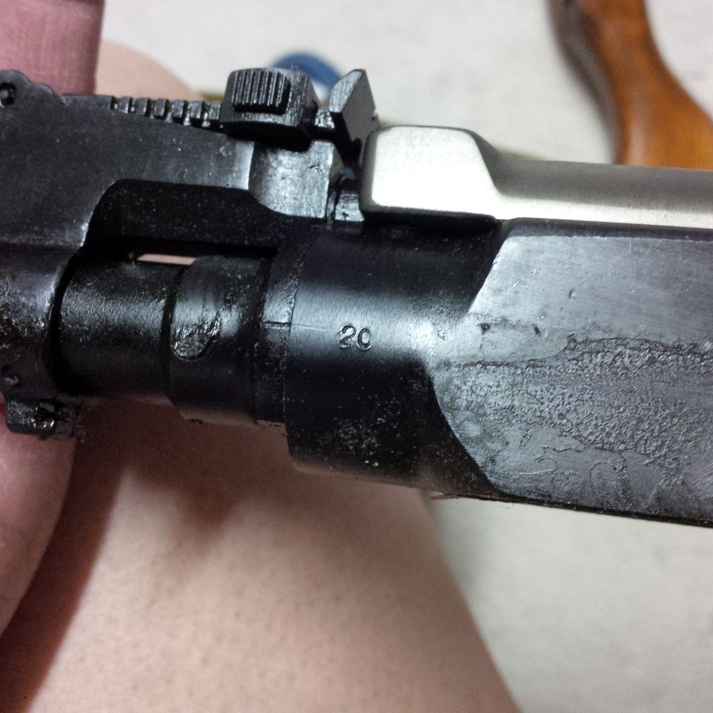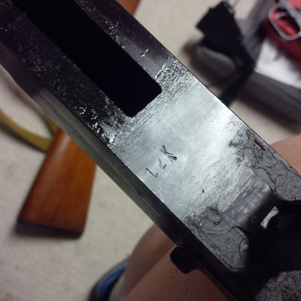 This one is on the receiver round with the lug looking pretty blank (to me anyhow, another 20 might be hiding under the grease)- that's something we simply don't see in the US.  That leads me to think that this gun was built/refurbed long after our Chinese type 56s stopped coming into the US (which was in 1994).