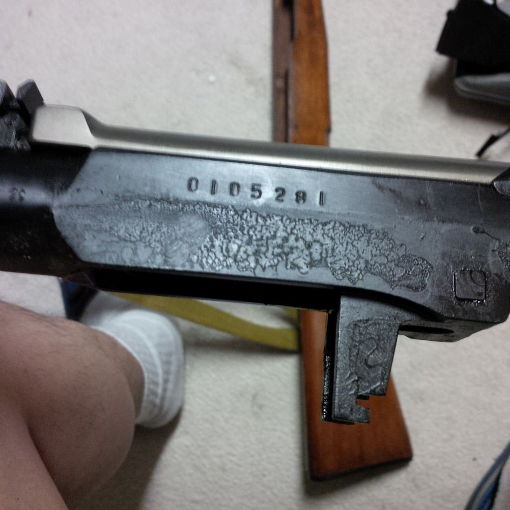 See how the receiver cover has flats to match the sides of the receiver?  Both have been ground down a bit in order to scrub the S/N and other markings on the receiver.  99% sure it's a scrubbed older gun, refurbished in '01 & not newly built from old parts in '01.