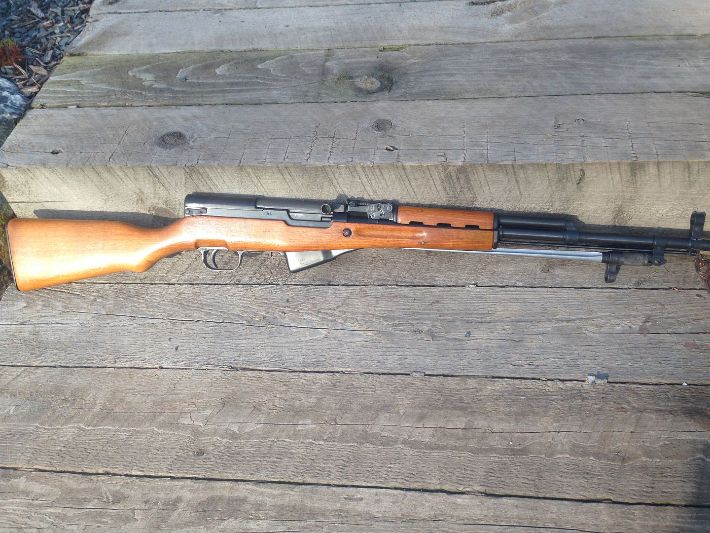 I got a nothing special sks today.  Pinned barrel,  /016\, KFS ALT GA on the receiver, milled fcg, bubba got the stock off and put it in a plastic stock with a plastic bipod on the bayolug.  Metal is very nice and it came with a box (20rds) of ammo and a soft gun case for $325.