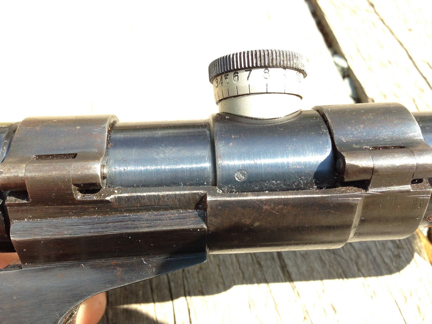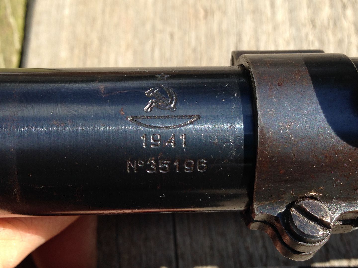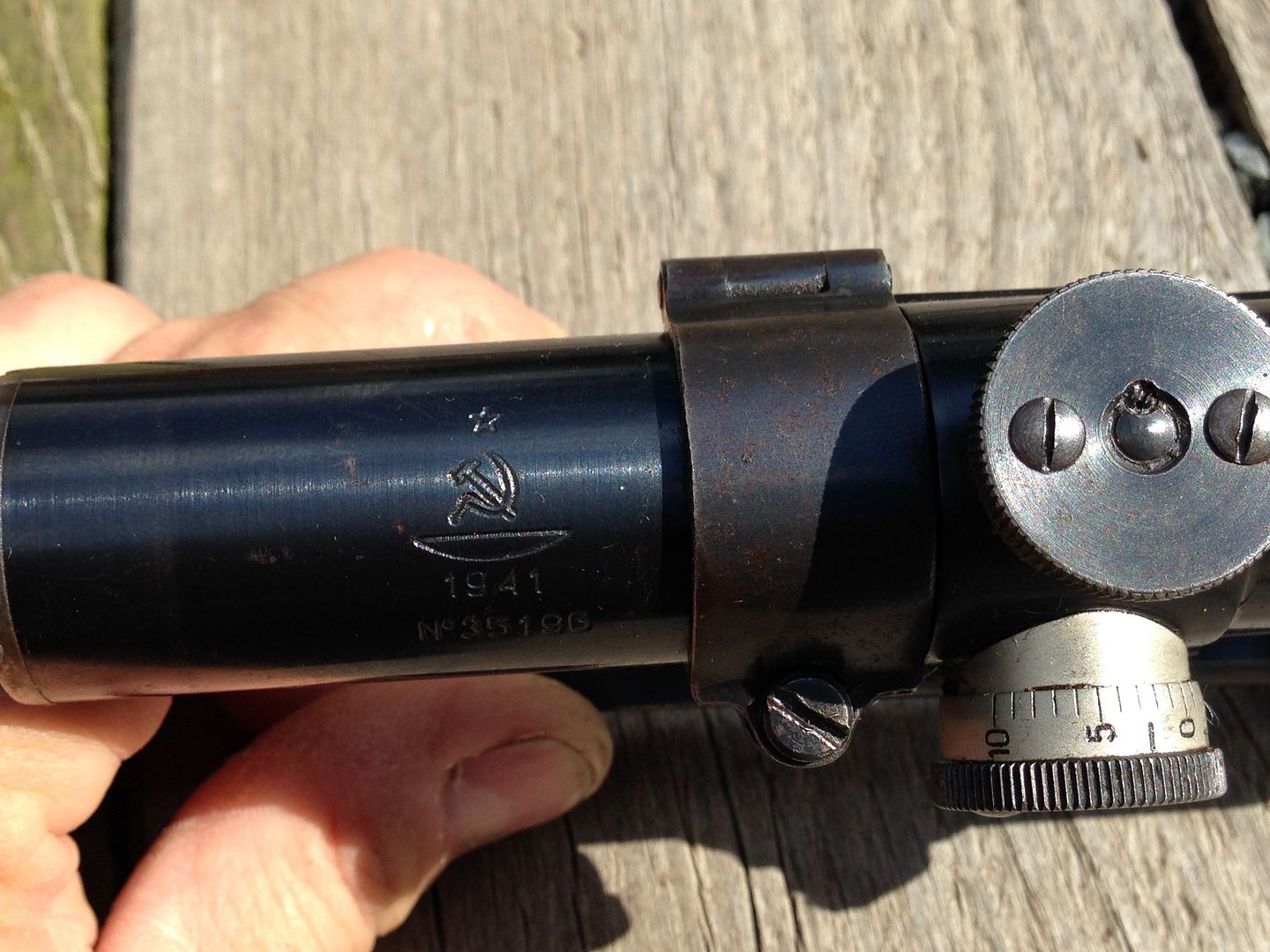 Wow!  thumb1 That is very cool. I've never even held an SVT-40, let alone a sniper, so take my comments with a grain of salt, but that looks as real as it gets. The patina on the scope with the wear marks from the lens caps, the round headed screws on the elevation and windage knobs, and the makers markings speak to a legitimate PU scope. Similarly for the scope mount. Does the ground and restamped serial number on the scope mount match any other number on the rifle? I don't know who put it together but it looks like all real parts. If the real experts agree that this is all authentic parts then, even as a complete mismatch, that has to be worth $2500+, right?