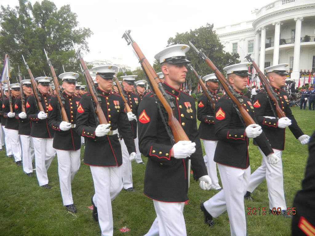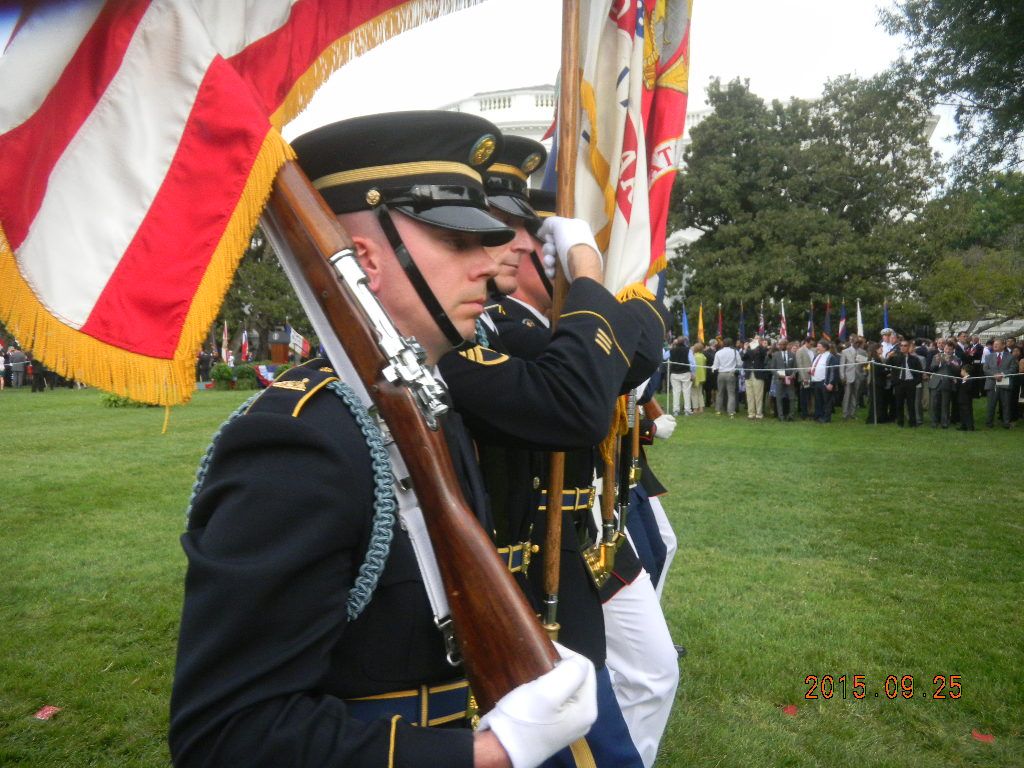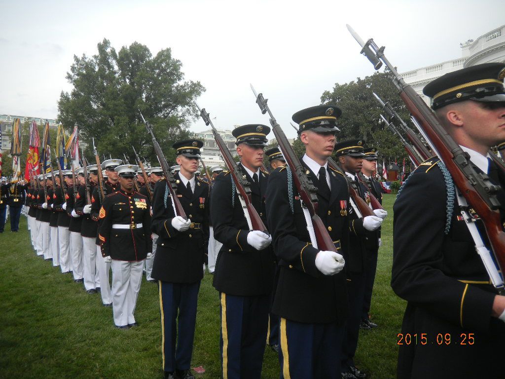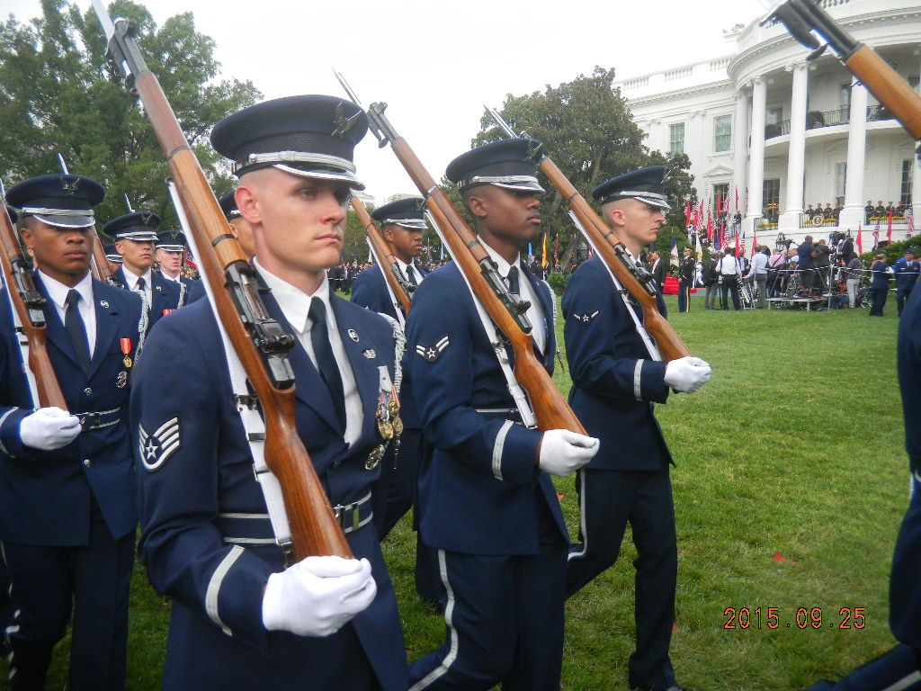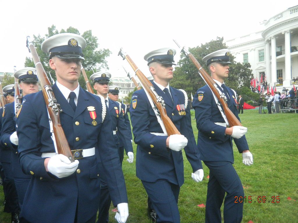 Since we're talking about honor guards and their weapons. Here's some nice honor guard photos depicting their rifles from all services at yesterday's ceremony. A guy from another forum posted these HG photos. He was present at the ceremony as President Obama welcomed Xi Jinping to the White House for an official State Visit. He was standing behind the Army Honor Guard and captured these photos. These rifles are clearly modified and you can see some obvious mods and missing parts, like the missing extractor on the M14, which you can see on the close-up shot with the Army Honor Guard.