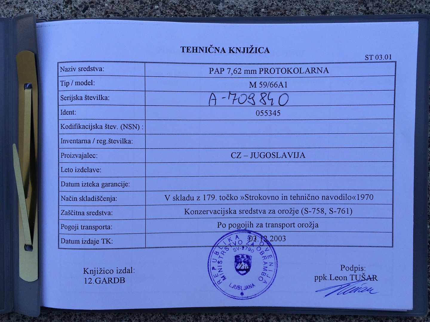 That's the only place I've seen it but I have not broken down this SKS yet. I'm reluctant to scratch the bluing on the screws or receiver cover  rofl but eventually I'll do it...very carefully. The one that LC shows on his slightly higher SN A series has the same first three digits (238##). Subtraction of the SNs (difference = 79) vs. subtraction of these "assembly" numbers (difference = 16) doesn't yield the same gap.  I hypothesize that they hand-selected some at Zastava for conversion to Protocol rifles, not a single block, and that the electro-penciled numbers correspond to those protocol rifles. Big leap on the basis of two examples, and not having torn either one down yet.  Also, the large number, 23876, means either my hypothesis is plain wrong, or the first two or three digits have another meaning other than a simple serialization (because I doubt that 24000 of these were made).  We'll see as we get deeper into the internals, and as we have more examples to compare.  The booklet doesn't say anything about manufacture or conversion at any other facility, it only mentions CZ (Crvena Zastava, Red Flag), so I suspect these Protokolarna rifles were converted at Zastava.  Again, negative evidence (no other manufacturer listed) doesn't prove this, just a working hypothesis.