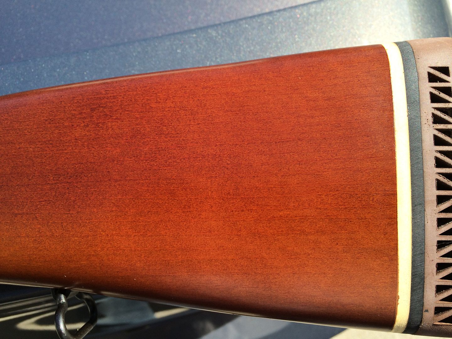 Yeah, it's definitely wood... Just really nice wood! The finish is similar to a modern off the shelf rifle, like a 10/22, for example.