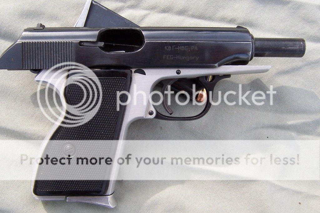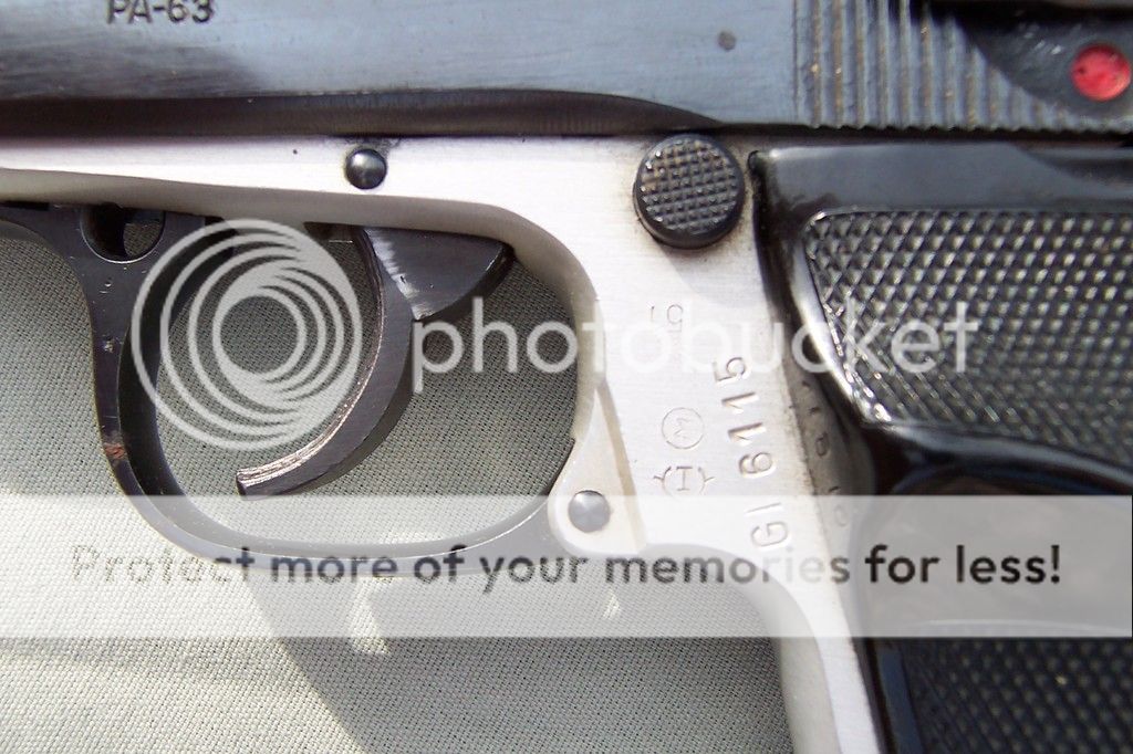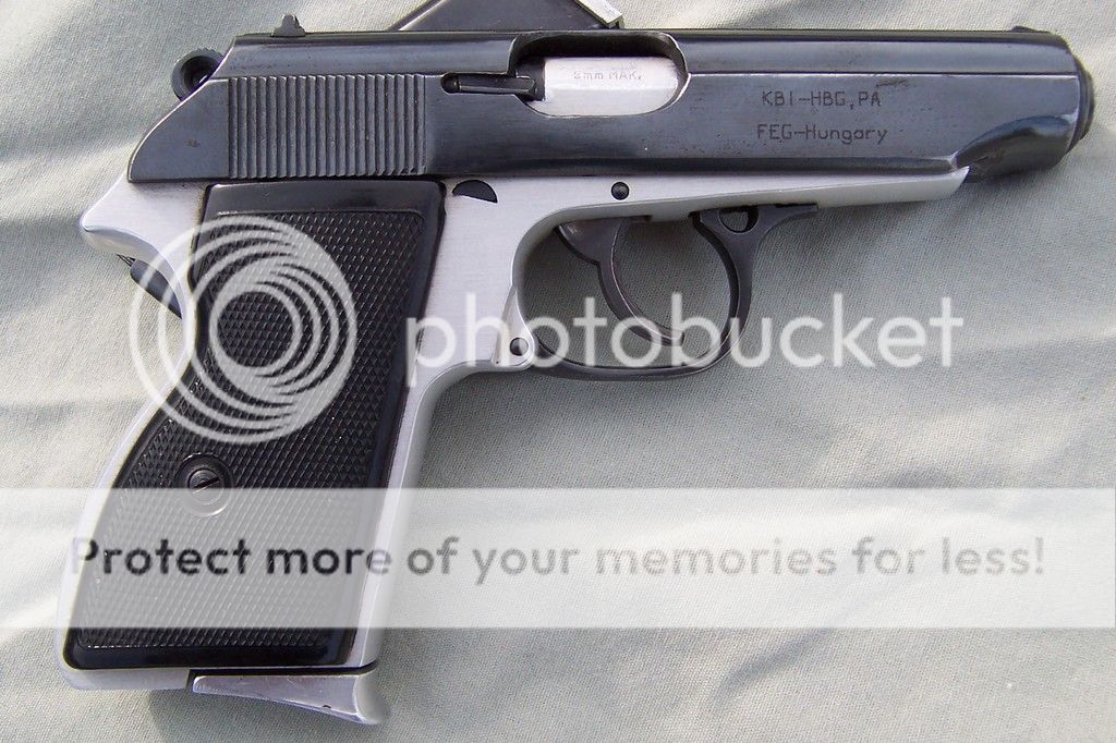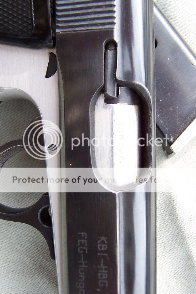 The fact its military and still two tone was a selling point for me...don't see that very often. It was done as a time and cost saving measure. These were carried by Hungarian police and military till 1996 ( some police still do) The frame is an aluminum and .1% titanium alloy and weighs in at a scant 1.6 pounds loaded. For export only models are colored black mostly and have different markings on the slide. Holds 7 rounds and is a blow back design. It was modeled after the Walther PP/PPK and has a few lil differences concerning the safety. I'll add some take down pics soon, It is so simple to take down  thumb1  Now that I've stuck a toe into the 9x18 mak world...well should be some Mak pics coming soon enough  hurry1 Thanks for looking.