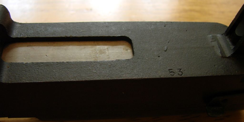 The magazine has striations that make it appeared filed down, but they are uniform and cover all of the surfaces of the magazine closure. The RSB appears milled, but on the l/h side, it has some bubbles that usually appear on the cast parts.