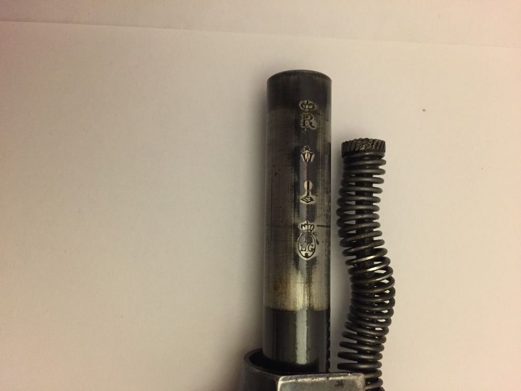 I was going to spend some time inside the guts of this pistol. I've read about how this design came to be, looked at some exploded views of the internals, and am frankly intrigued by how it functions. I'd like to see it in the flesh but for now I'm tempted to just leave it alone. I did pull the slide off just to get a pic of the barrel marks, snapped this quick pic. Maybe it will make sense to somebody.