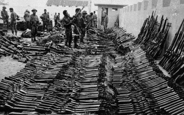 Those guys look like the "irregulars", kind of like our reservists. Just about all the ARVN troops I saw over there carried either M1/M2 or M16.  You can see what look like AK's in the pic to and the difference in the hats/bandanas kind of make them the irregulars, still weren't worth a plug nickel--most of them would rather run than fight and couldn't be depended on for anything.  You could find one of the irregulars that would sell you his carbine for $30 to $40 without much trouble. Just about as good as the Iraqis' we trained and supplied all the nice newer guns-vehicles-planes to.