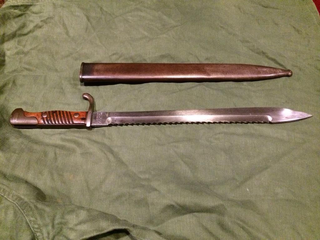 I picked up this small ring (1.25”/31.8mm) Mauser K98a recently in an auction lot that included a 98/05 sawback bayonet in very good condition.  I was actually going after the bayonet for my Gew98 as much as I was going for the K98a.  This K98a was apparently re-arsenaled somewhere outside Germany after WWI.  It was clearly manufactured in Germany, as it has many imperial crown markings and the appropriate imperial German eagle on the bolt, as well as the right features like the curved stacking hook that indicate it wasn’t a Polish made rifle.  From my understanding, the beechwood stock is atypical but not unprecedented for a German K98a.  It’s a mixmaster that was presumably re-serialized as 1018, after scrubbing and rebluing (there’s some scattered shallow pitting present, and it’s all blued).  I’ve completely broken it down and cleaned and inspected it.  It has no import stamp or even pre-’68 country of manufacture/origin stamp anywhere.  Vet bringback? think1  I’ve seen some rather vague internet references to these going to Spain for the Civil War but I don’t see any stamps indicative of Spanish acceptance, at least that I recognize.  I’m not pretending to understand all of the stamps or subtle features so I’d be really happy to hear any insights. The bore is beautiful with sharp and clean rifling, so I wonder if it was rebarreled in the rearsenal process. Both the barrel and receiver are stamped 1018 but that probably means little since it’s the refurb SN and I don’t see an indexing mark on the barrel. I paid what I would consider quite fair for shooter in this condition, so I’m happy. Well,  I hope you enjoy the pics!