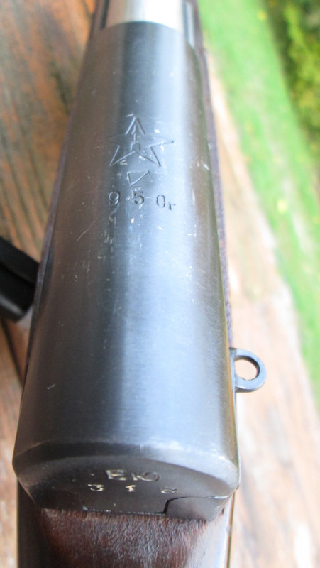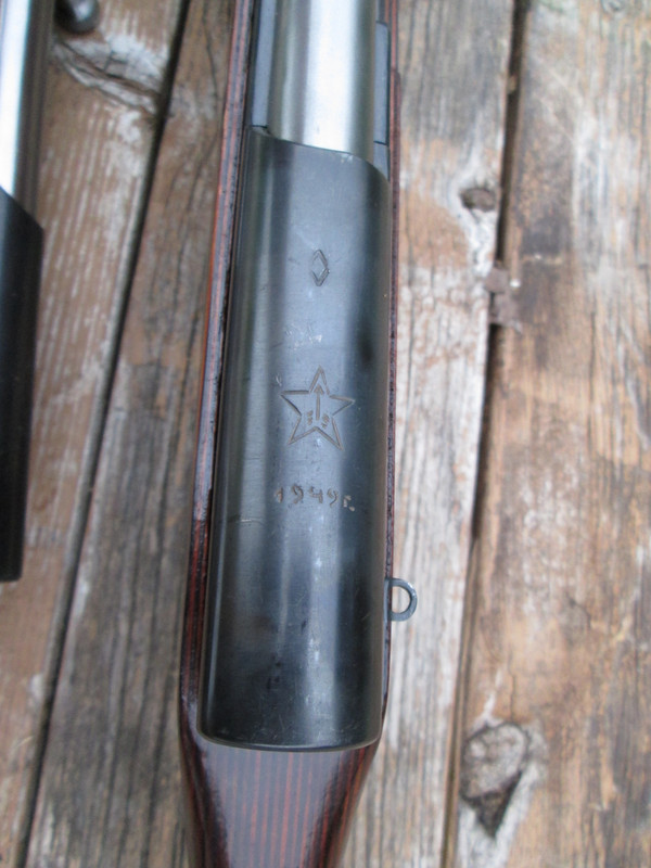 I saw an early 50 for sale on a Canadian website. I asked if he could send me some pictures and he sent me this album. This is another example of a early SKS, it has a forged eyelet latch, 90 degree gas port, blade bayonet but it has a stamped star and date.