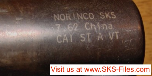 Notes: I think this one is the next logical one to place in the CAI progression as the St. A. is still prevalent, there is no Norinco marking, and the location is on the barrel.