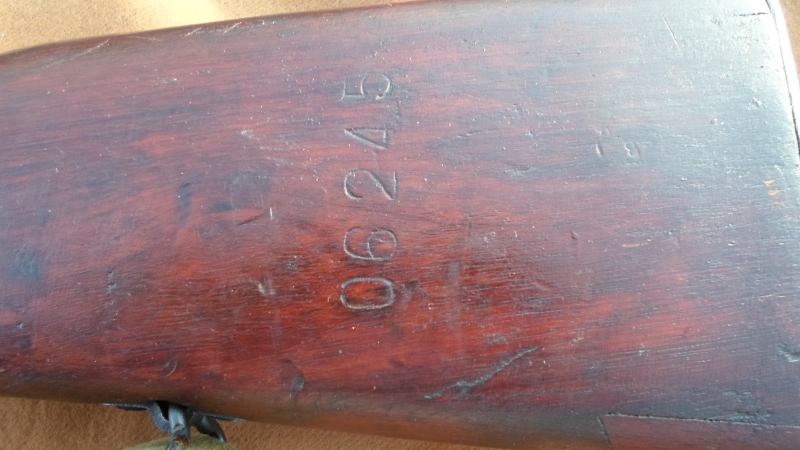 I was lucky enough to have an offer dropped on me just before Christmas from a former member. I couldn't.. I just couldn't.. let it pass..since I did admire it in all it's worn mismatched beauty, well.. it became mine today, and UPS didn't kill it over the holiday rush. Not a very common factory number to find, it's only the second I've seen in reality.... maybe between 4 to 6 are documented.. It has traits of the IC series, small CAI barrel import stamp, shellac finish and pitting under the wood line. The metal finish is worn oh so very nice, and the butt repair is cool as hell, so one thing is, this ain't no storage crate commercial special.