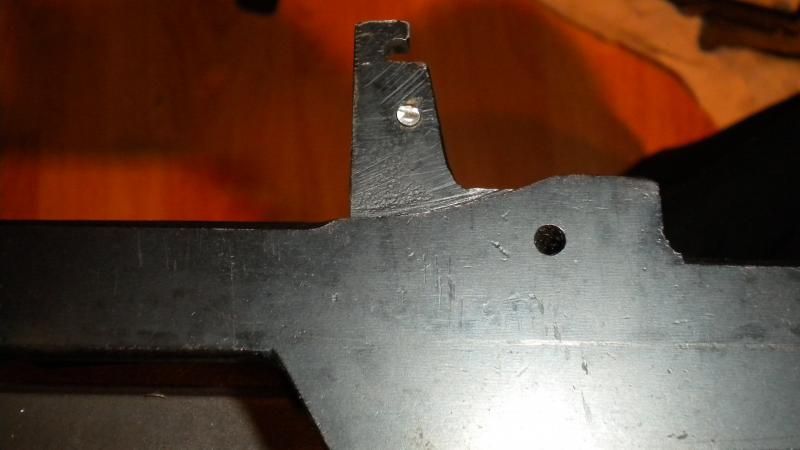 The heavily mutilated RSB and the underside of the leaf...the bluing is uniform over the whole base, apparently over the gouge job to make the AK sight leaf 'work'