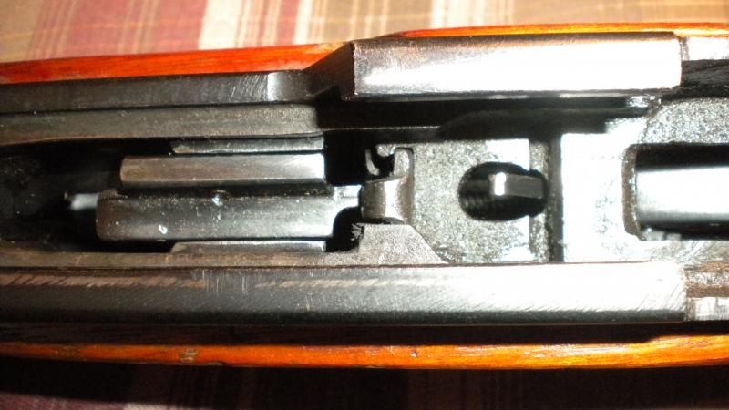 I compared it to a 78 /26\ and boy is there a lot different going on under the hood with this one.  Not being particularly aware of what exactly goes on in there I welcome any advice.  I seem to remember someone doing a animation of how the bolt system works...but I have no idea where to find it. Stupid lack of search functions...there.   There does seem to be some banging around in there which might explain the replacement bolt carrier. It appears almost like someone fired it without the recoil spring in place once....if that is even possible.  There are a couple dings in the back of the receiver that seem to indicate something going wrong at some point...but it could of happened when they were 'fine tuning' the internals.
