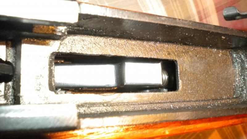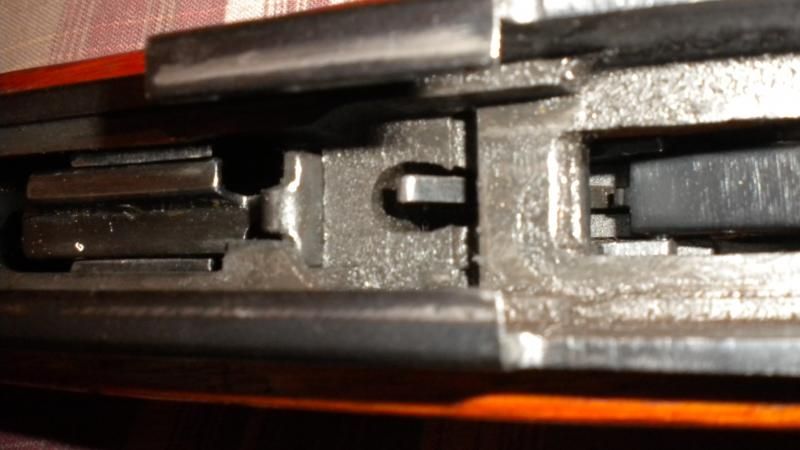 Y'know that weird square thing on the sides of the receiver on most SKS's?  That is not present on this one, instead a hole that passes all the way through.  Perhaps an unutilized section for select fire?  I always wondered what those square things were on all my other SKS's, but never thought much about it until now.