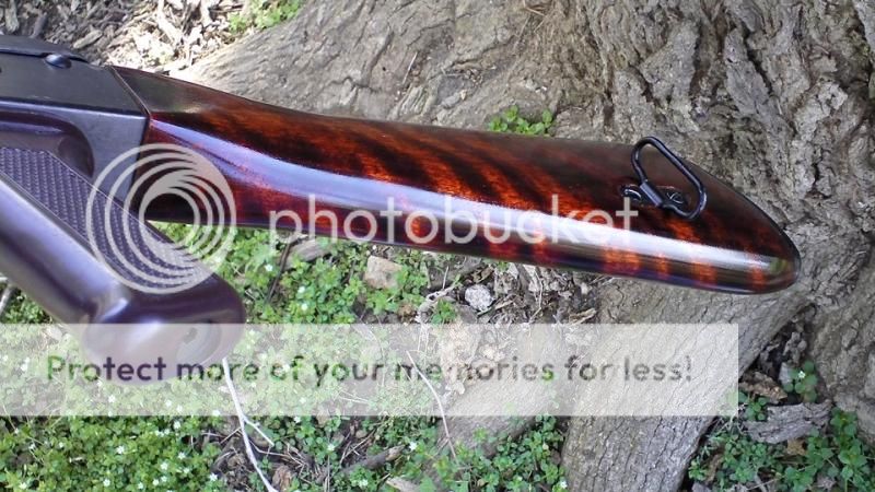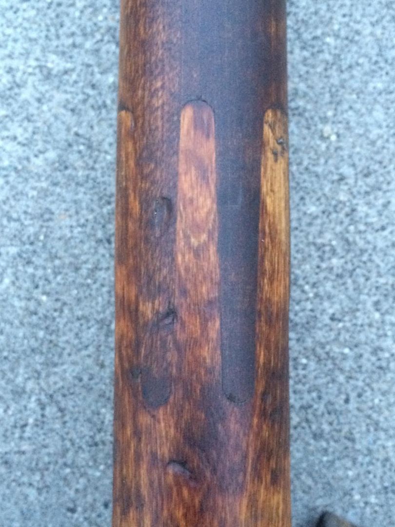 Arctic birch and pine tar finish. Pine tar was the normal stock finish, and depending on the stock, would greatly enhance the stripe effect.