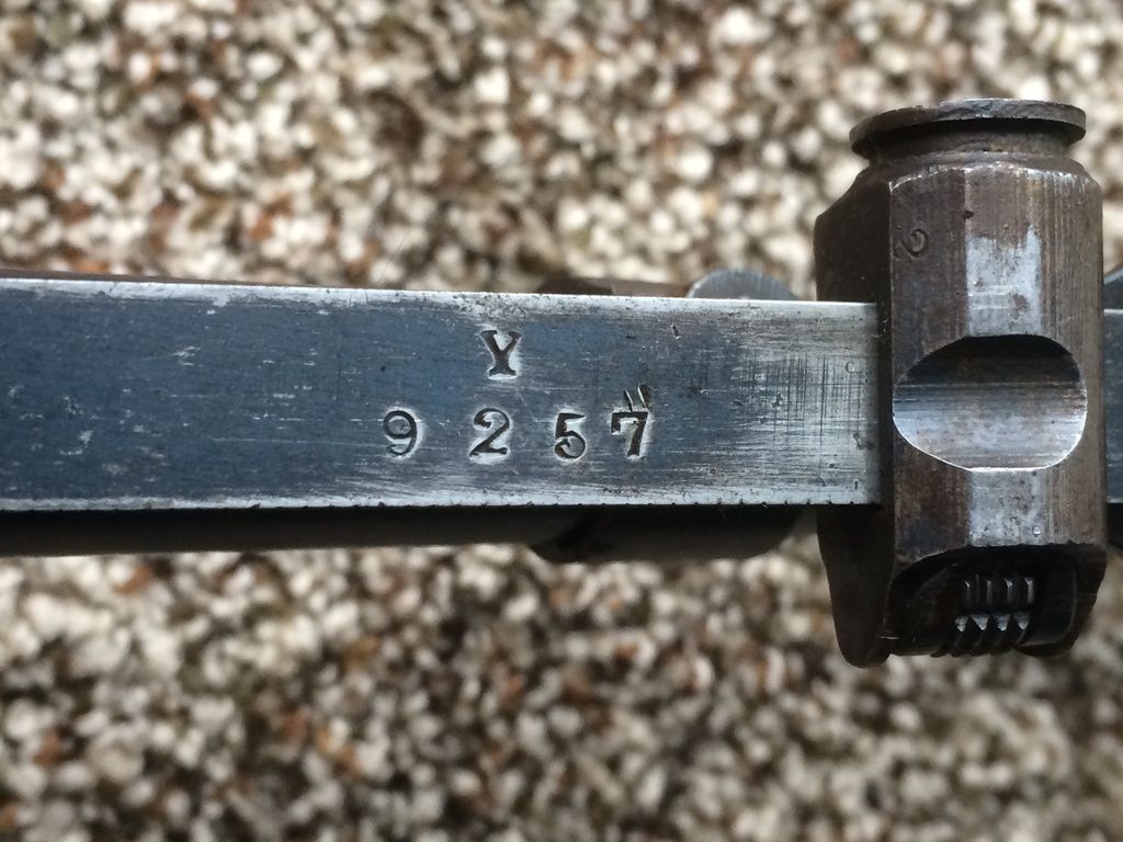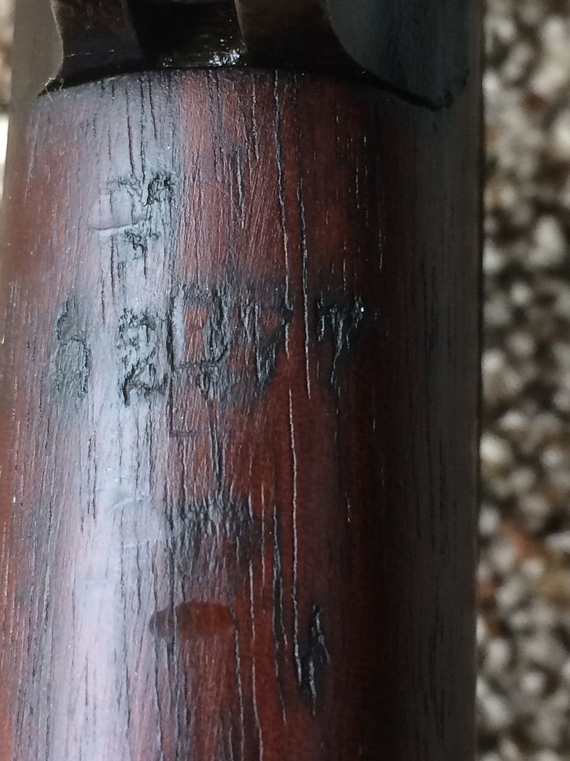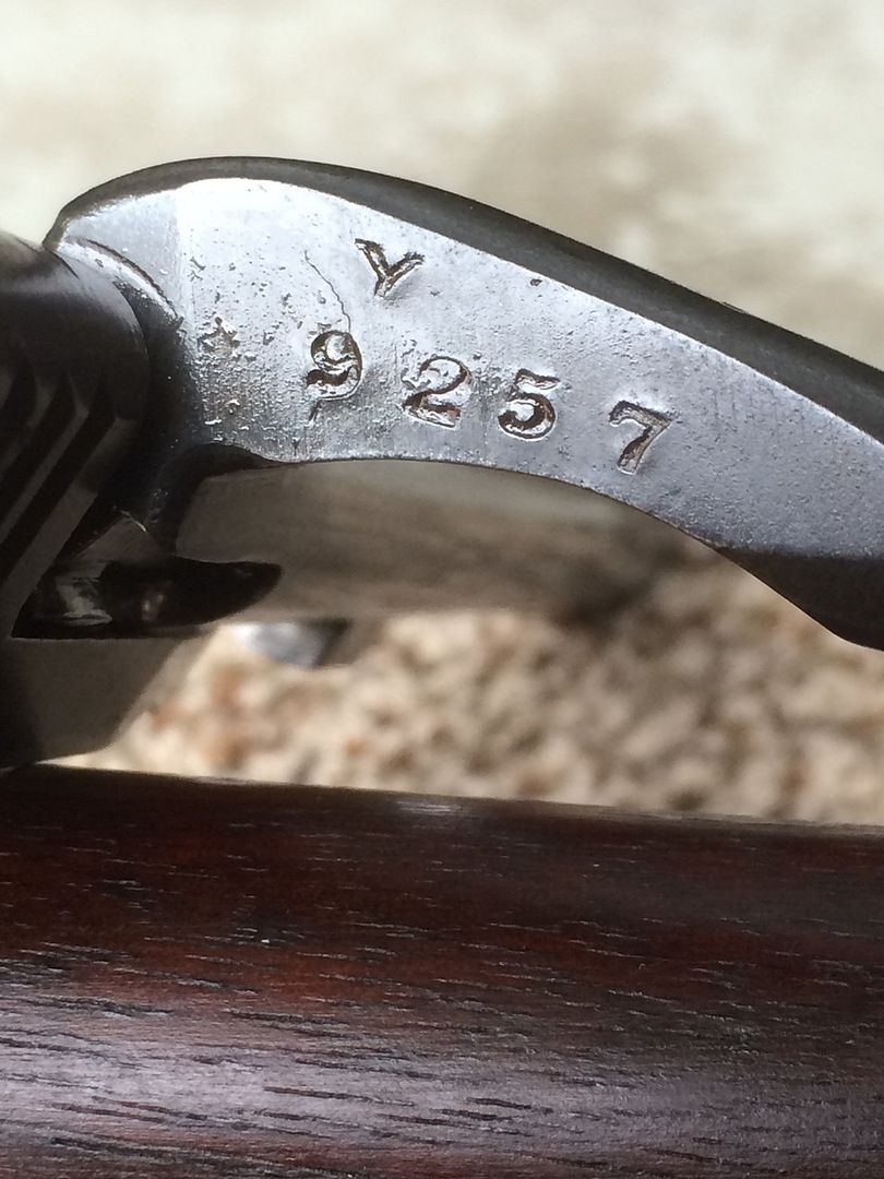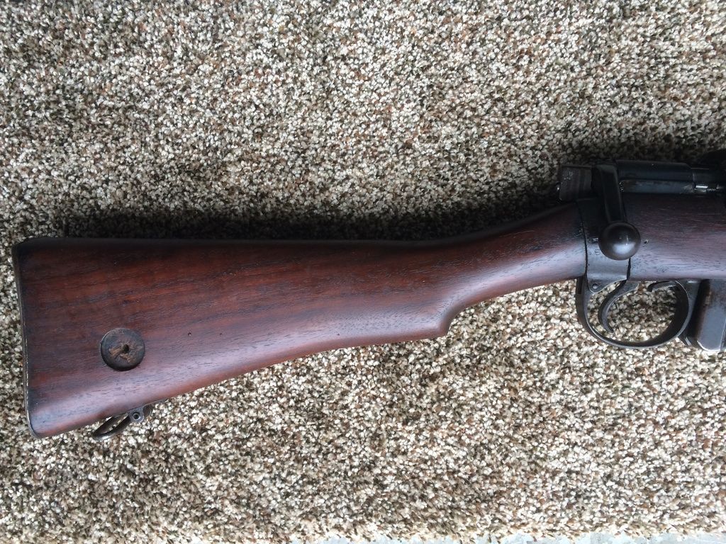 Pictures below are of a Short Magazine Lee-Enfield (SMLE) MkIII*, more commonly known after the British went to the No. system in 1926, as the No1 MkIII*.  My new-to-me No1 MkIII* was manufactured at the Enfield RSAF (Royal Small Arms Factory) in 1918, as shown on the right side of the wrist.  All of the serial numbers, found on the receiver, barrel, bolt handle, nosecap, underside of the backsight leaf and the underside of the forestock, match.  The nice dark walnut furniture is basically devoid of nicks and dents, suggesting that it was refinished, or really coddled (and the metal finish argues against the latter).  Fortunately whoever did it, armorer or private owner, they used an oil finish as on the original furniture.  This rifle does not have an FTR (Factory Thorough Repair) mark so the metal probably has its original finish.  It has a great bore with sharp rifling and I also found a brass oiler and pull through under the butt plate trapdoor. Anyhow, I'm pleased with it as it completes my collection of at least one version of each of the more common variants (No.1, No.4 and No.5) of the Lee-Enfields.  banana time  :))